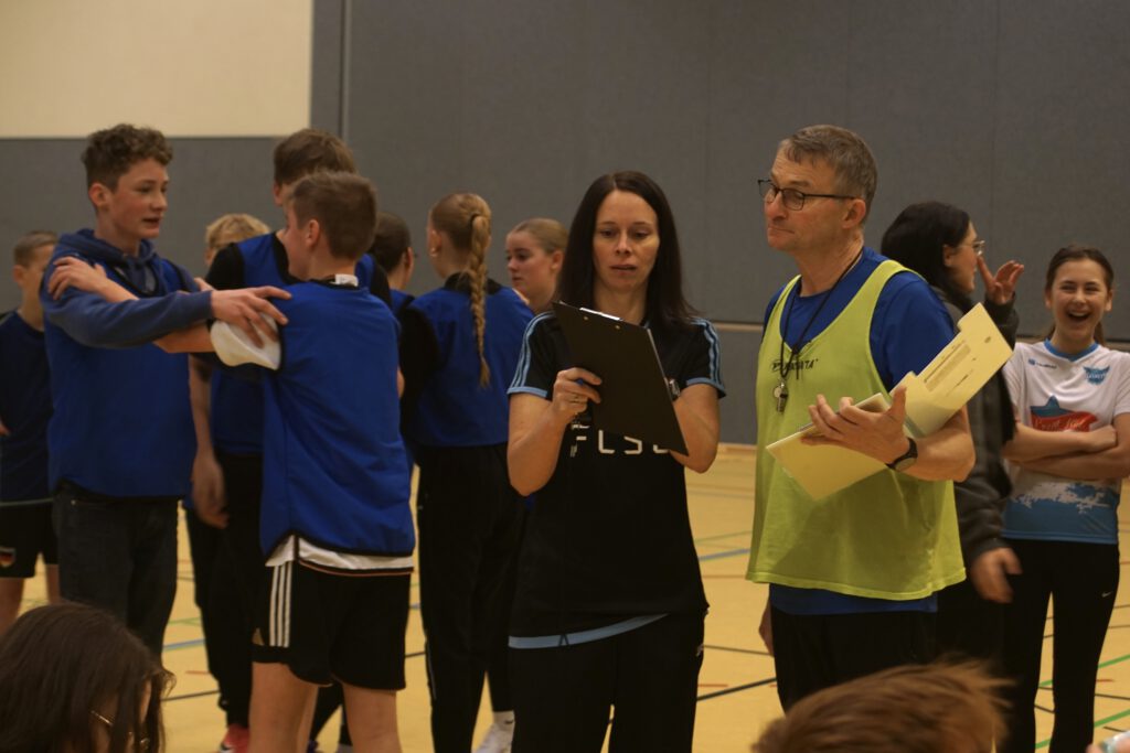 So spielten am 08.12.2023 alle 8. Klassen gegeneinander, um den Jahrgangschampion 2023 in dieser Ballsportart zu ermitteln. Jede Klasse stellte ein Mixed-Team zusammen, damit auf dem Spielfeld immer mindestens zwei Mädchen teilnahmen. Die Wettspiele waren sehr umkämpft, aber durchweg fair ausgetragen worden. Gewonnen hat die Klasse 8d, aufgrund des besseren Korbwurfverhältnisses. Denn drei Klassen haben gleichviele Spiele gewonnen, so dass das Trefferverhältnis die Entscheidung brachte. Es gratulieren die SportlehrerInnen.